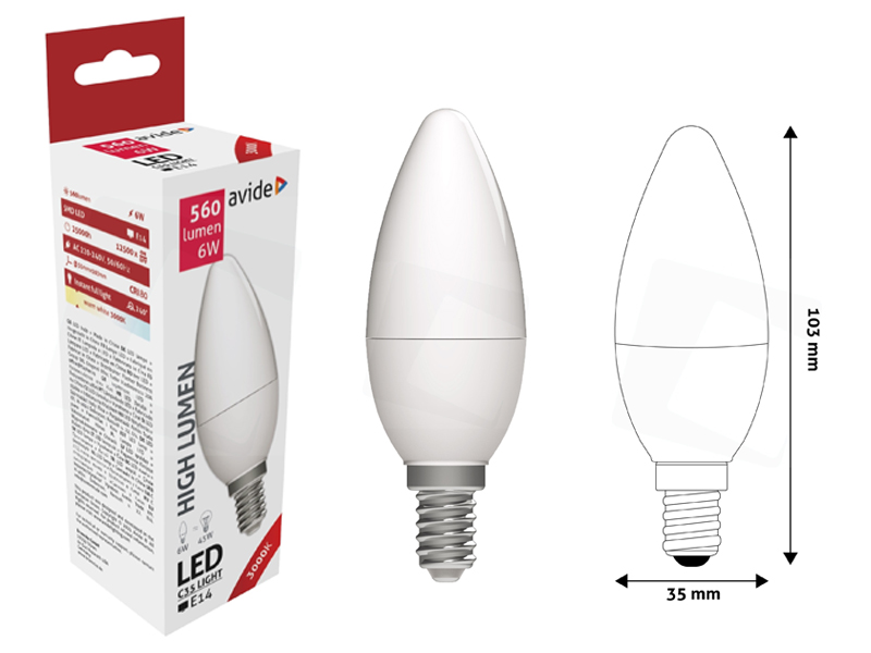 Avide LED Candle 6W E14 WW 3000K