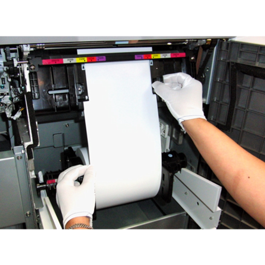 A gép egy papírtekercsből dolgozik - öblébe 102, 127, 15, 203 vagy 254mm szélességben 100m hosszú tekercseket helyezhetünk, melyekre köszönhetően a Noritsu képfeldolgozó rendszerének, akár 175cm hosszú nyomatokat is készíthetünk.