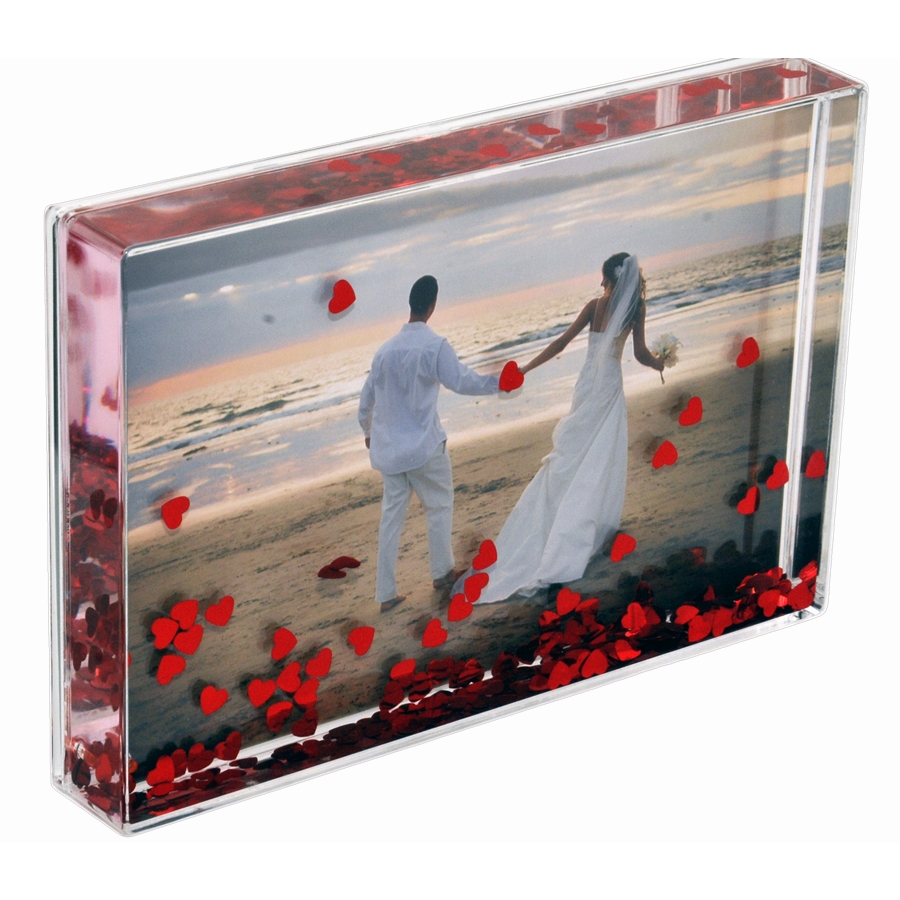 Akril fotóhasáb úszó szivecskékkel, 10x15