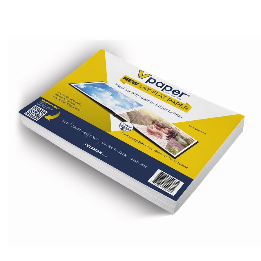 A PELEMAN V-Paper terméke egy különleges eljárással kétszeresen biegelt papír jelent. A kétszeres hajtásnak köszönhetően a papír a kötés gerincéből mindkét irányba tökéletesen hajtható lesz (egyszeri biegelés csak egy irányba biztosít kényelmes, jól fekvő hajthatóságot!). Ennek köszönhetően a V-Paperrel szinte tökéletesen síkban nyitható kiadványok készíthetők - dokumentumok, kiadványok vagy akár fotókönyvek is.